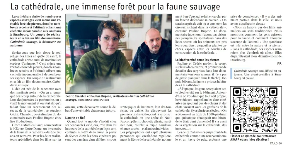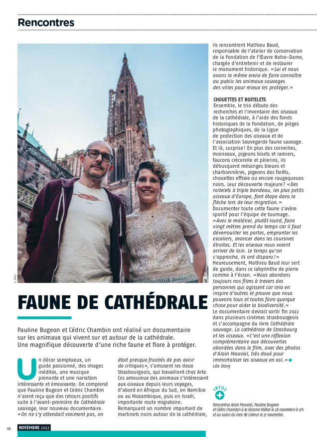 Qui est derrière le projet, comment l'idée de faire un film documentaire et un livre sur le premier recensement des espèces de la cathédrale de Strasbourg a-t-elle vu le jour ? Comme le tournage a-t-il pu se faire et avec quels moyens techniques ? Vous découvrirez tout ici !